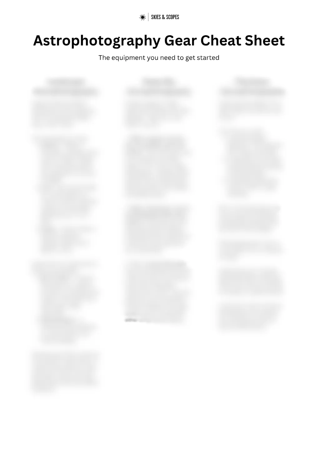Astrophotography Equipment Cheat Sheet